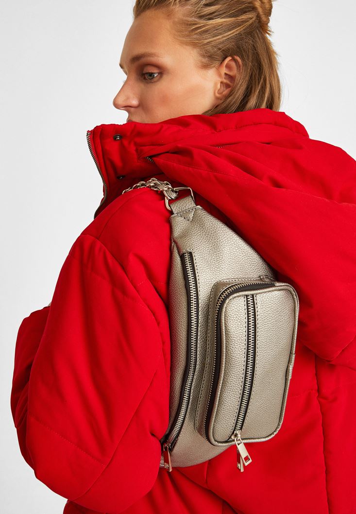 Zincir Detaylı Bel Çantası güçlü duruşu, kullanım konforu ve oldukça etkileyici detayları ile kombinlerinizi etkileyici bir şekilde tamamlamanıza yardımcı olacak parçalardan birisi. Başarılı ve eksiksiz bir kombin için aksesuarların önemine inanan herkesin mutlaka sahip olmak isteyeceği parçalardan birisi olan kadın bel çantası hem kullanışlı olması hem de modern ve asi tarzı ile beğeninizi kazanacak. Klasik bel çantası görünümü ve bu görünümü destekleyen metal fermuarlar tasarımın çözgün havasını güçlendiriyor. 3 farklı gözü ile kullanım rahatlığı sunan bel çantası, eşyalarınızı dilediğiniz gibi organize etmenize yardımcı olacak. OXXO’nun enerjisi yüksek kadınlardan aldığı ilhamı yansıtan zincir detaylı bel çantası modeli ile kombinlerinize farklı bir enerji kazandıracaksınız.