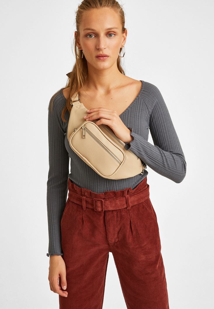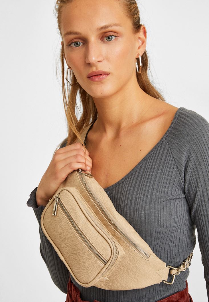 • Bayan Krem Zincir Detaylı Bel Çantası