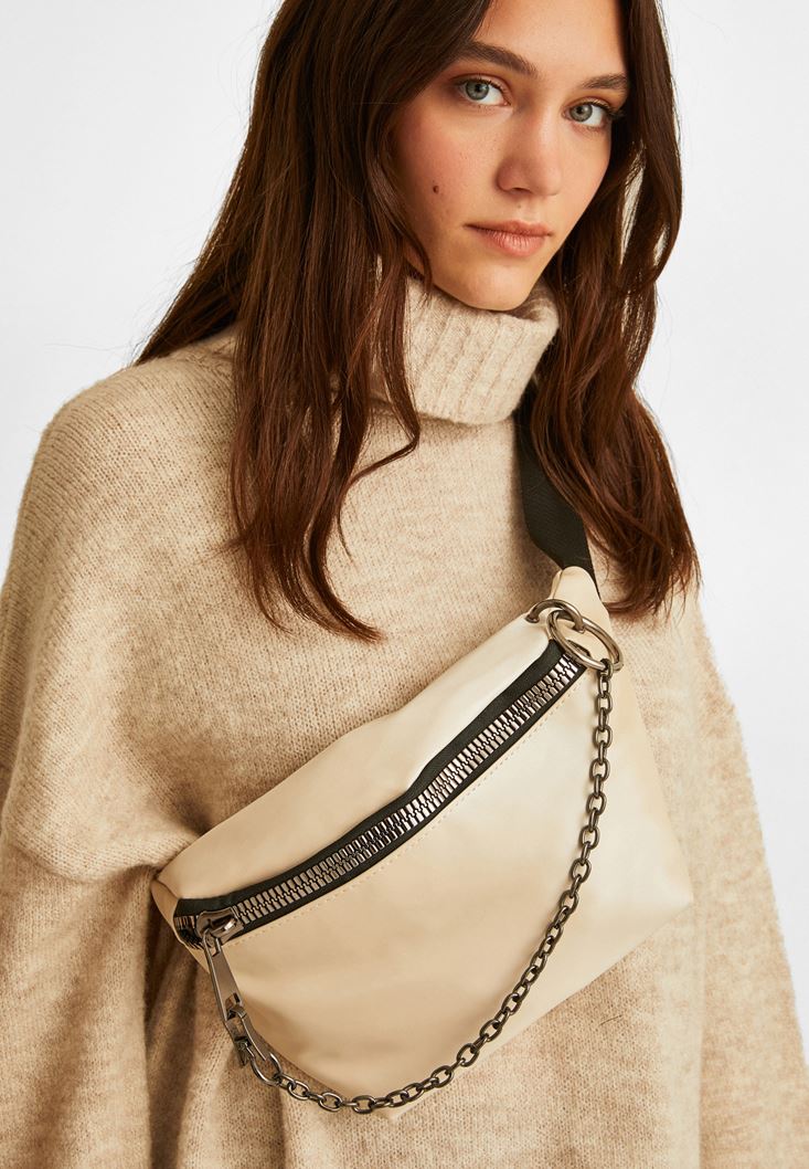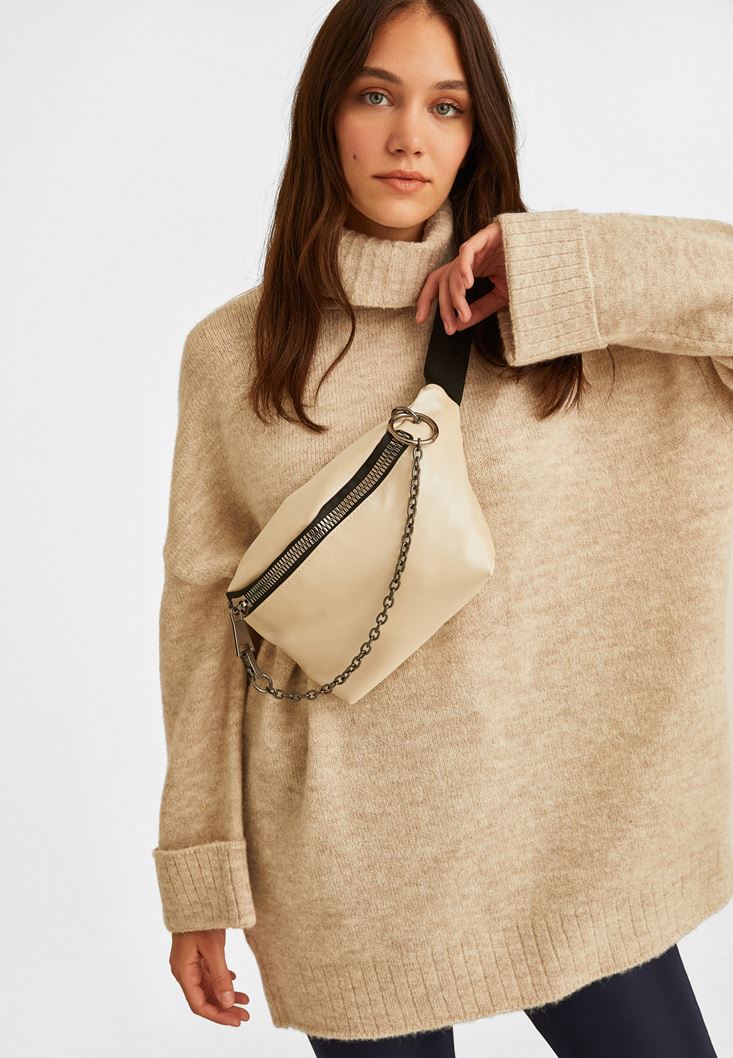 • Bayan Krem Zincir Detaylı Bel Çantası