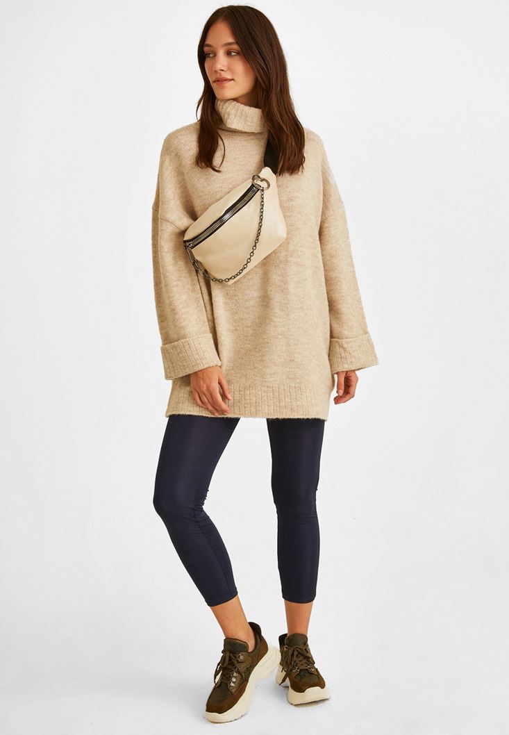 Zincir Detaylı Bel Çantası modeli, deri dokusu ve modern görünümü ile sizlere sunuluyor. kadın bel çantası modeli, önünde bulunan halkalı zincir detayı ile yenilikçi bir görünümü sizlerle buluşturuyor. Günlük hayatınızda kombinlerinize rahatlıkla uydurabileceğiniz zincirli bel çantası modeli ile tarzınızı hareketlendirebilirsiniz. Şişme mont ve triko kazak tasarımları ile oluşturacağınız göz alıcı kombinlere, bel çantası modelini kolaylıkla dahil edebilirsiniz. Pratik kullanım imkanı sunan kadın zincirli bel çantası ile Oxxo cüzdan modellerini tercih edebilirsiniz. Uzun elbise modelleri ile yapacağınız şık kombinler için ideal bir seçenek olan kadın bel çantası sayesinde, her zaman tarzınızı ön plana çıkarabilirsiniz. Oxxo'nun hem rahatlık hem de şıklığınızı önemseyerek sizlere sunduğu kadın çanta modelleri ile stilinizi dilediğiniz gibi şekillendirebilirsiniz.