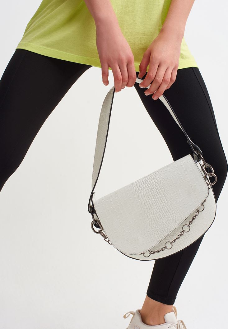Zincir Detaylı Çanta modeli, dokulu derisi ve şık görünümü ile yeni sezonda sizlerle buluşuyor. Kadın çanta modeli, ön kısmında yer alan zincir detayı ve asimetrik kapak ayrıntısı ile oldukça dikkat çekiyor. Askılı çanta modeli, yarım daire şeklindeki tasarımı ve göz kamaştıran renkleri ile Oxxo'da sizlere sunuluyor. kadın çanta modeli ile hem günlük kombinlerinizi hem de şık davetlerde oluşturacağınız stilinizi ön plana çıkarabilirsiniz. Askılı çanta modeli sayesinde mükemmel bir uyum yakalamak için deri botlar veya düz ayakkabılar tercih edebilirsiniz. Oxxo'nun hayran bırakan dokularla ve farklı detaylarla sizlere sunduğu kadın çanta modelleri ile tarzınıza ayrıcalık katabilirsiniz.