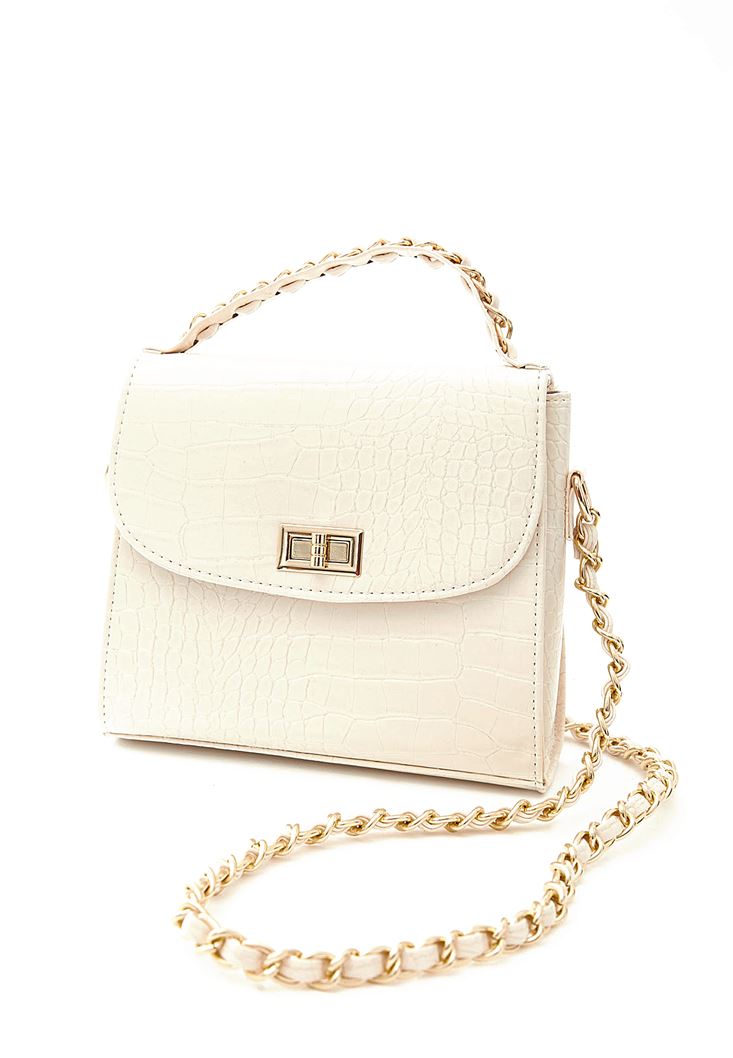 • Bayan Bej Zincir Detaylı Crocodile Çanta