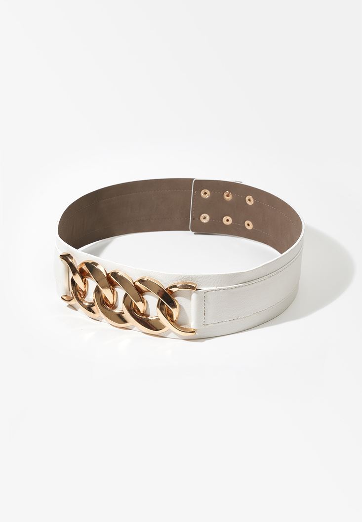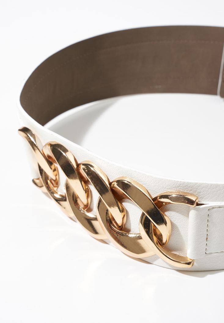 Beyaz Zincir Detaylı Kemer