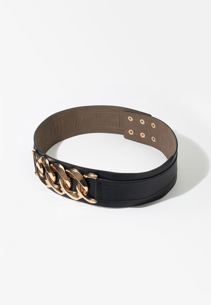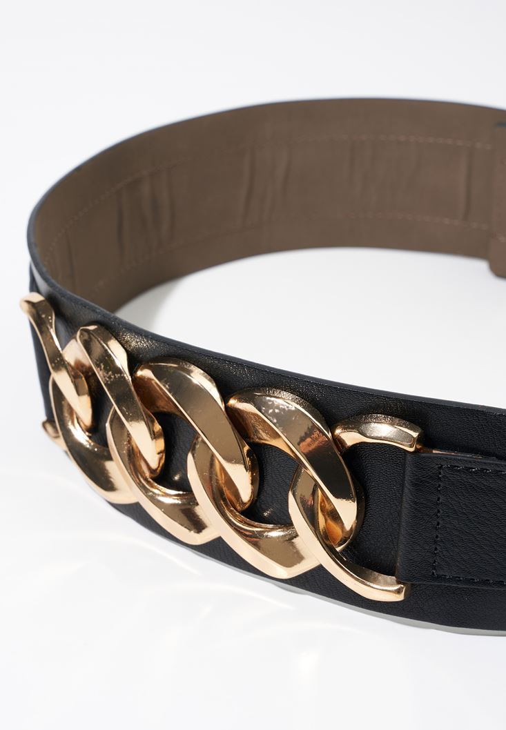 Siyah Zincir Detaylı Kemer