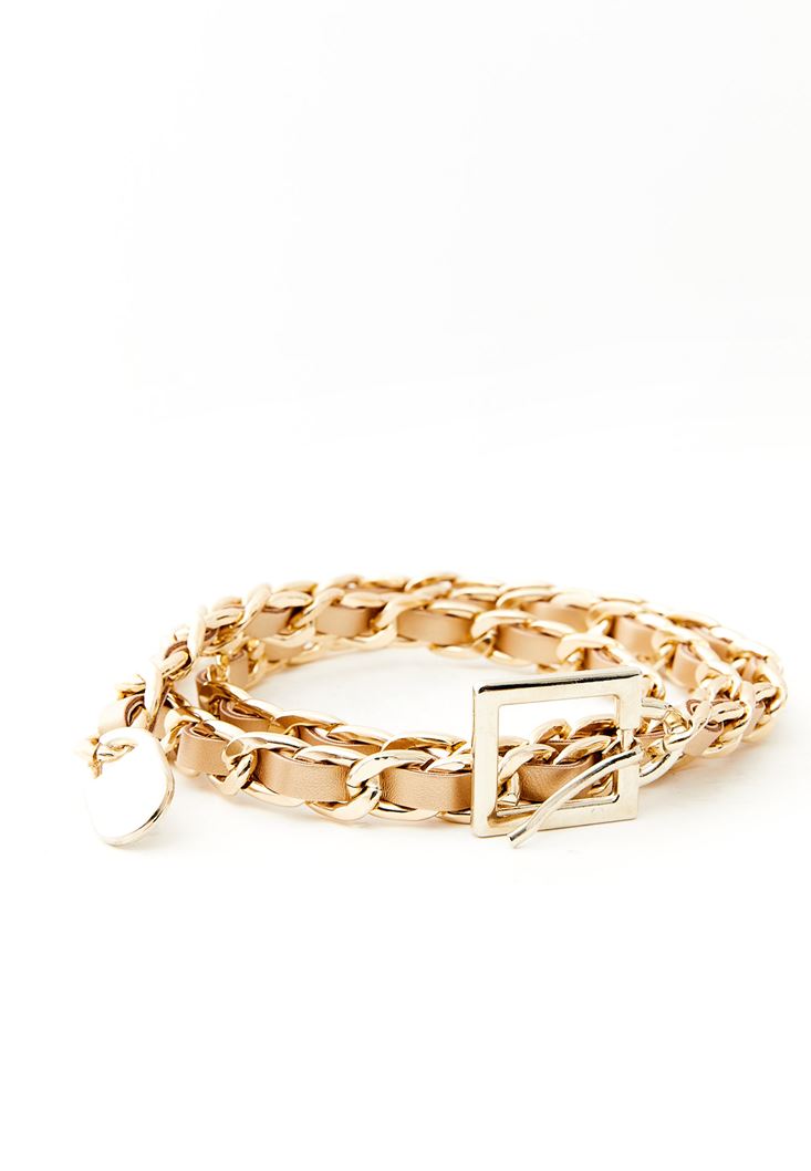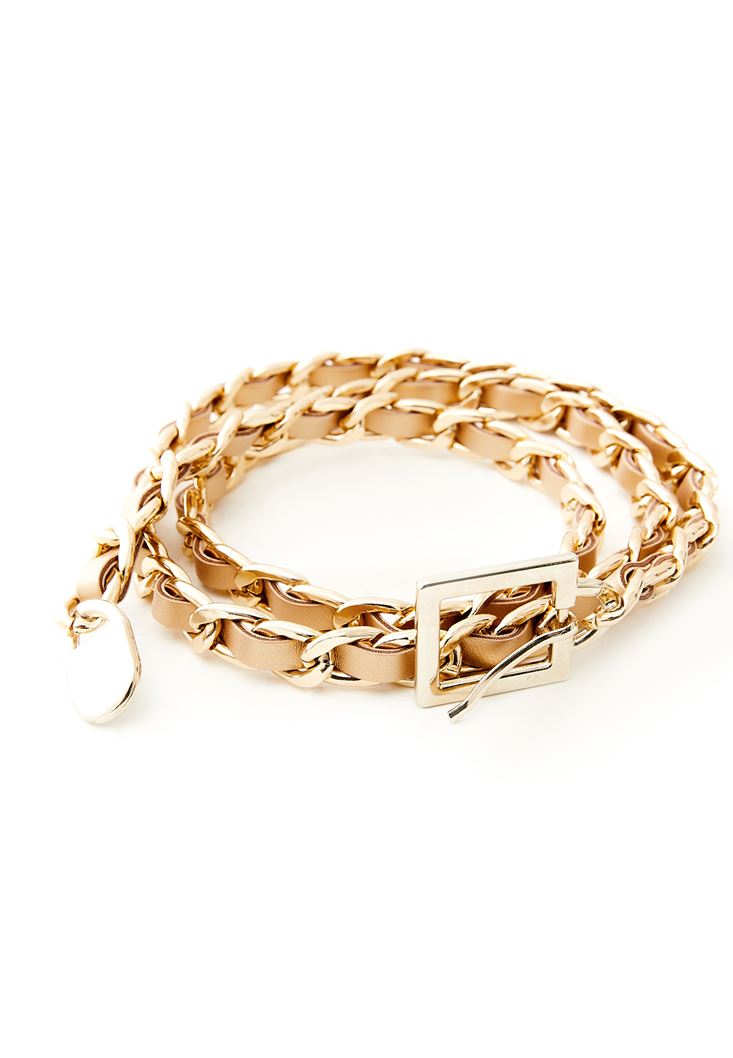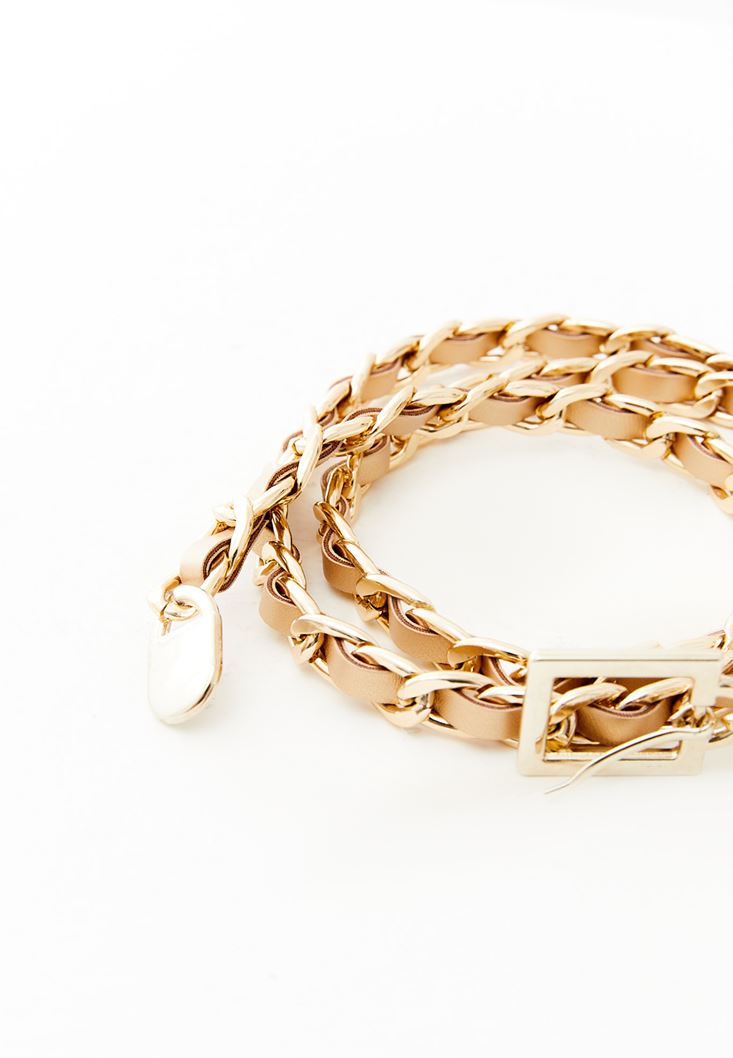 Bej Zincir Detaylı Kemer