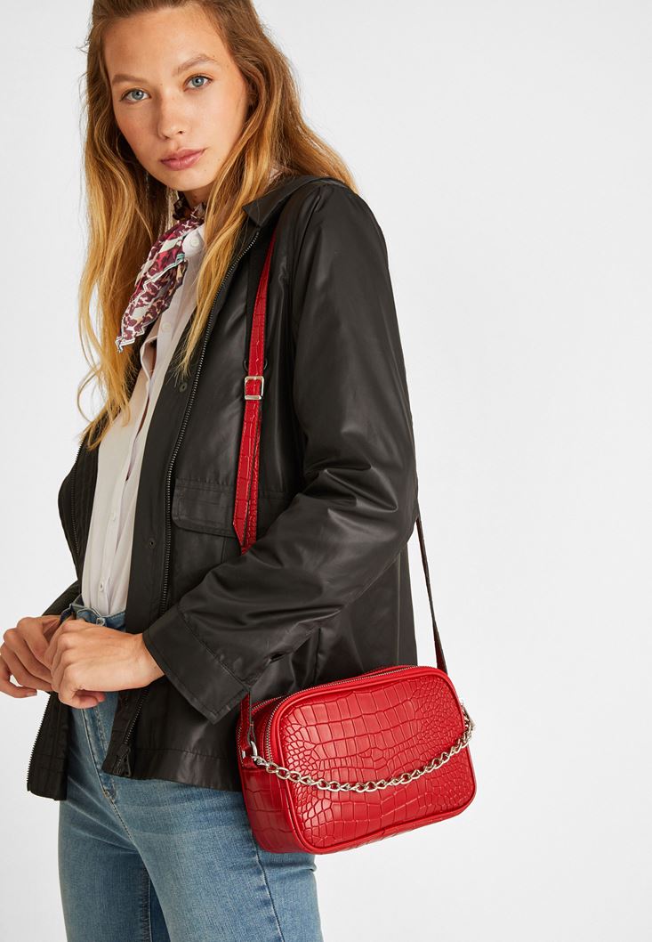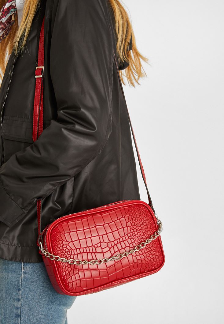 Kırmızı Zincir Detaylı Kol Çantası