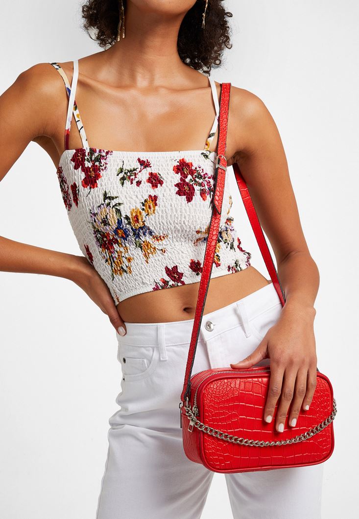 • Bayan Kırmızı Zincir Detaylı Kol Çantası