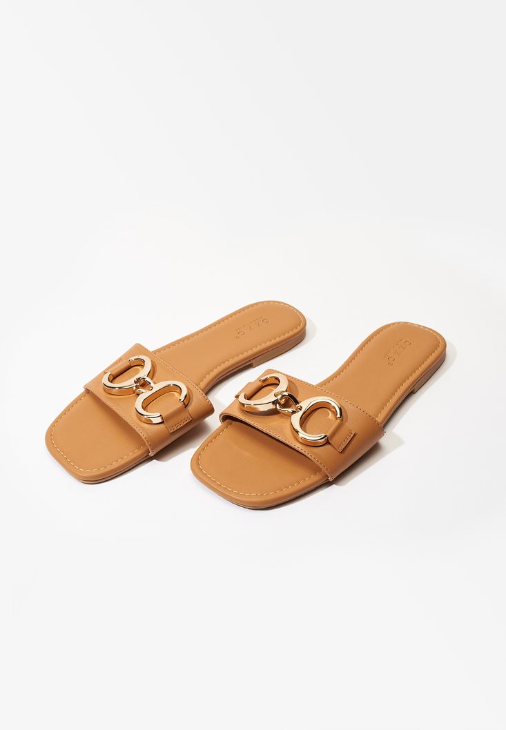 • Bayan Koyu Bej Zincir Detaylı Terlik