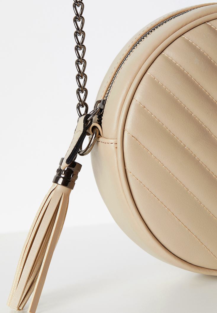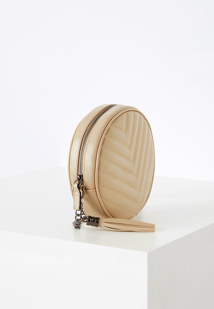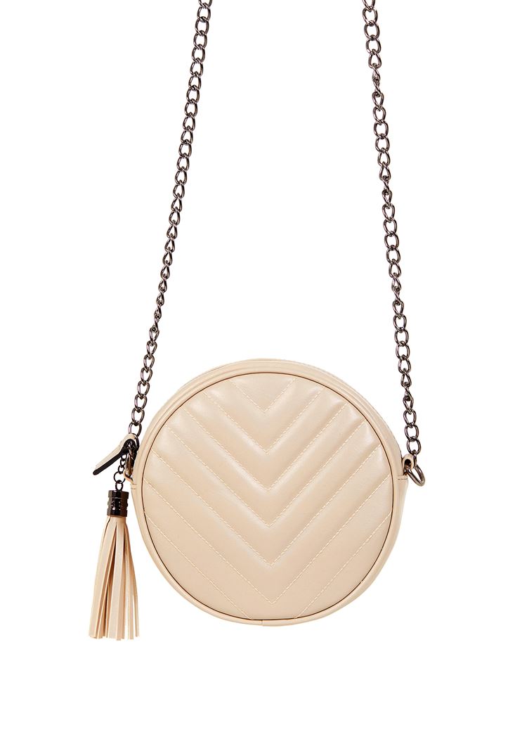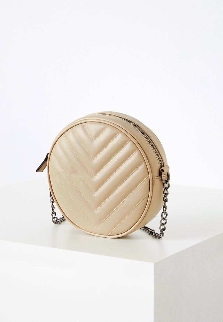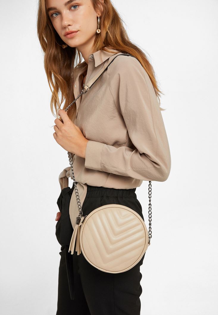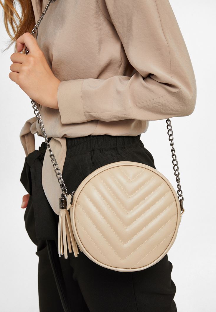 • Bayan Krem Zincir Detaylı Yuvarlak Çanta