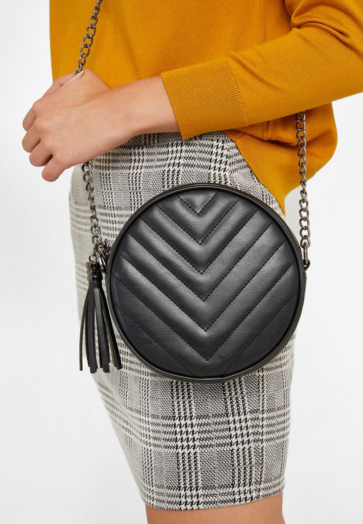 • Bayan Siyah Zincir Detaylı Yuvarlak Çanta