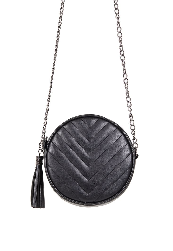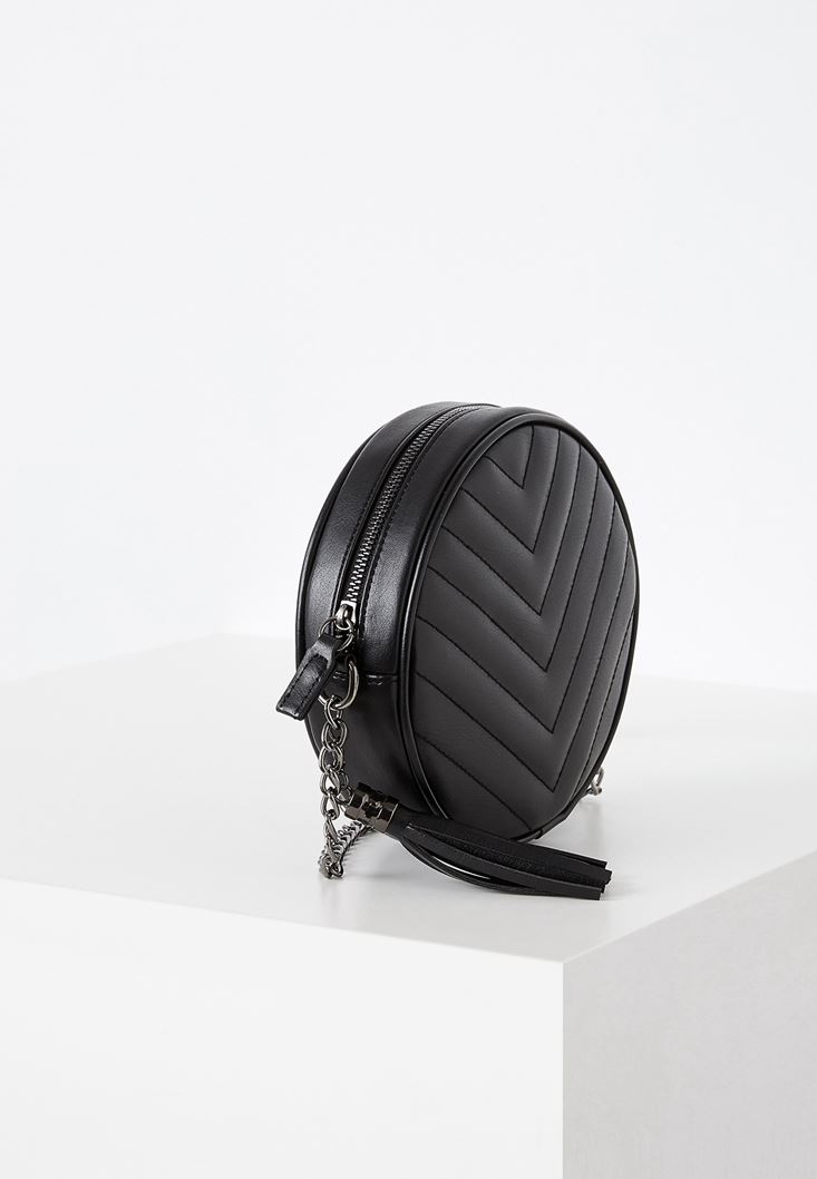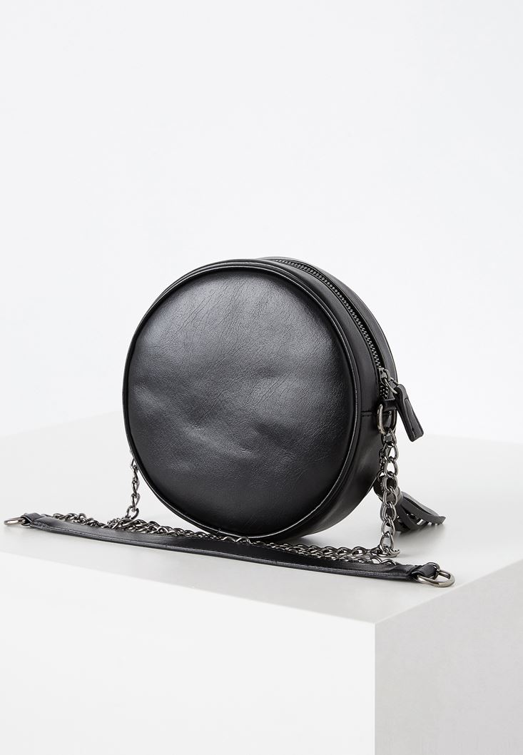 Siyah Zincir Detaylı Yuvarlak Çanta