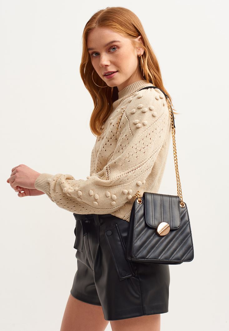 Günlük hayatında veya özel randevularında kombinlerini tamamlayabilecek doğru aksesuarı buldun! Kapitone çanta modelinin içerisinde cüzdan gibi özel eşyalarına rahatlıkla yer bulabileceksin… Favori aksesuarlarından biri olacak bu kapitone çanta ile hemen tanış! :)